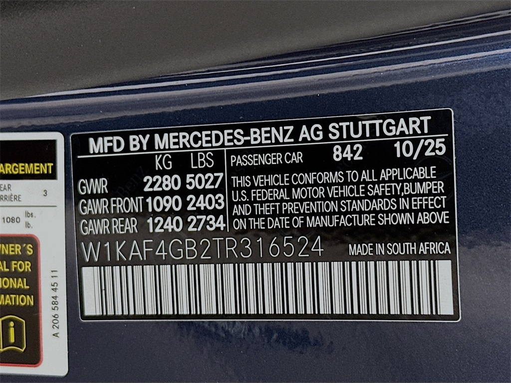 - VIN : W1KAF4GB2TR316524