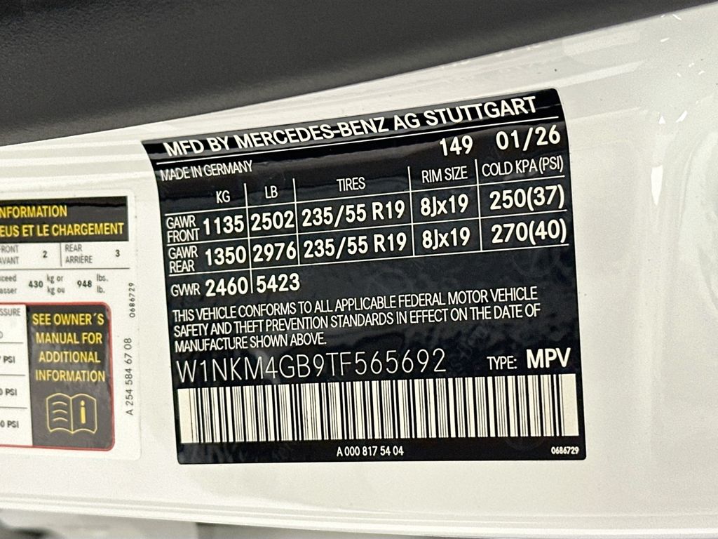 - VIN : W1NKM4GB9TF565692