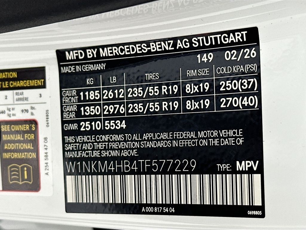 - VIN : W1NKM4HB4TF577229