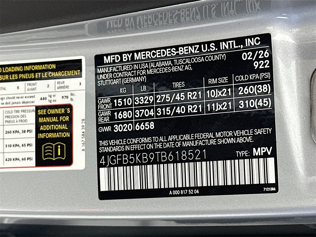 - VIN : 4JGFB5KB9TB618521
