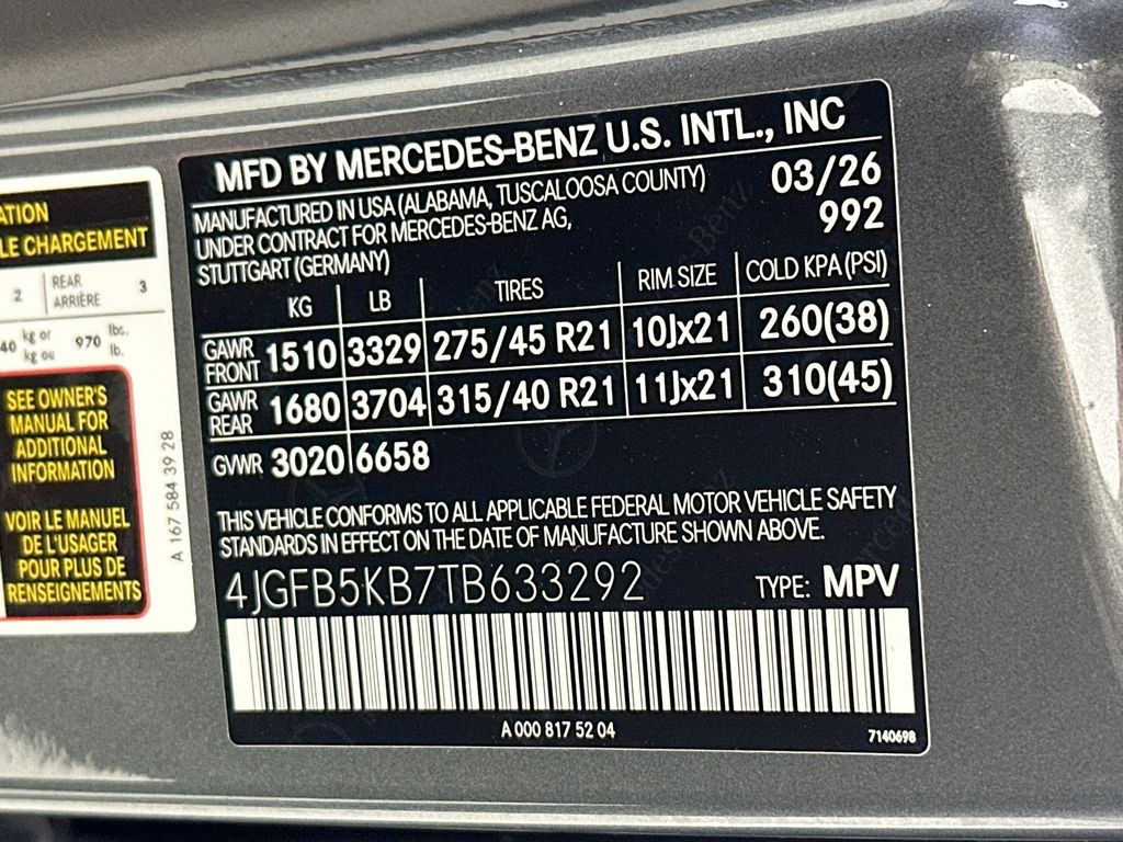 - VIN : 4JGFB5KB7TB633292