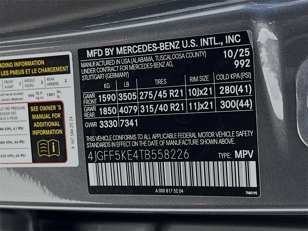 - VIN : 4JGFF5KE4TB558226