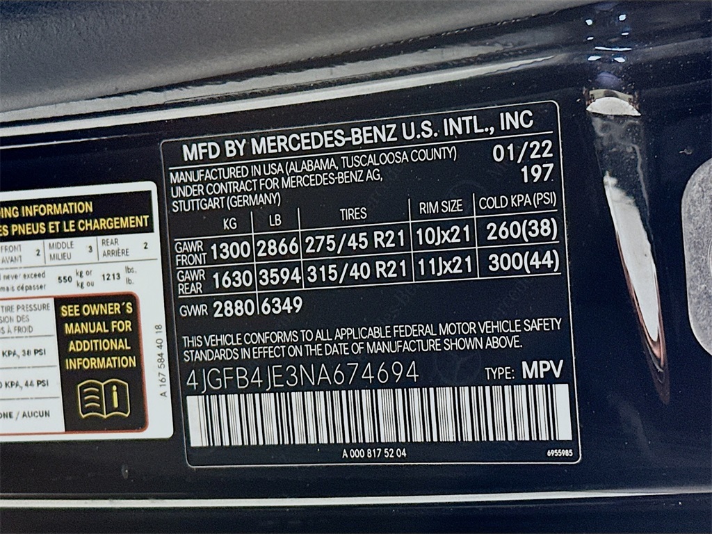 - VIN : 4JGFB4JE3NA674694