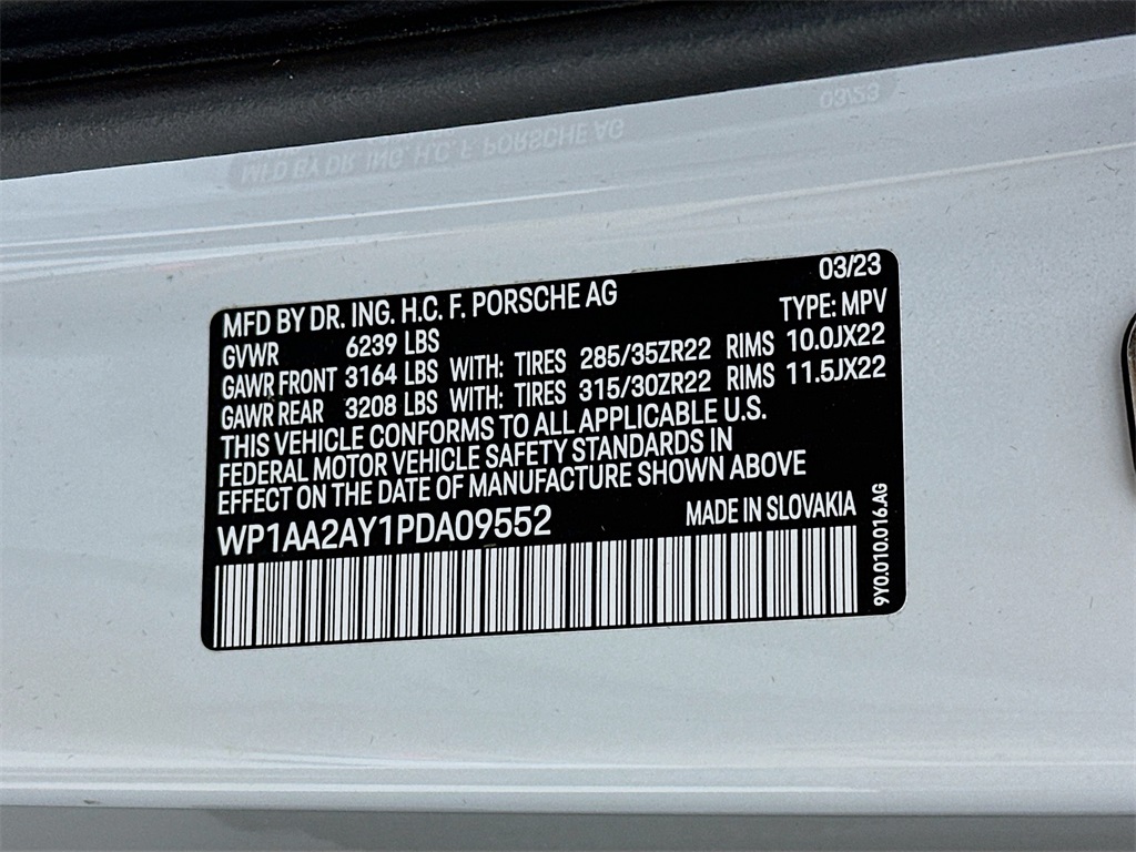- VIN : WP1AA2AY1PDA09552