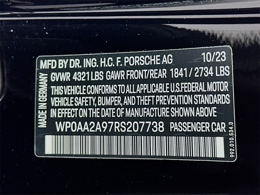 - VIN : WP0AA2A97RS207738